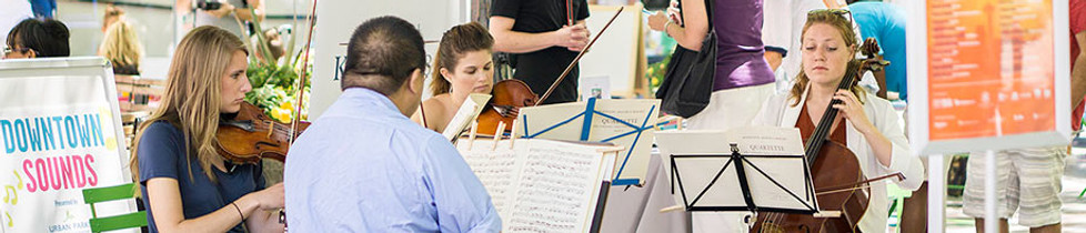 Enjoy music in the parks all summer long. Buskers are in the parks daily, and the 38th annual Out to Lunch Concert Series will return to both spaces.